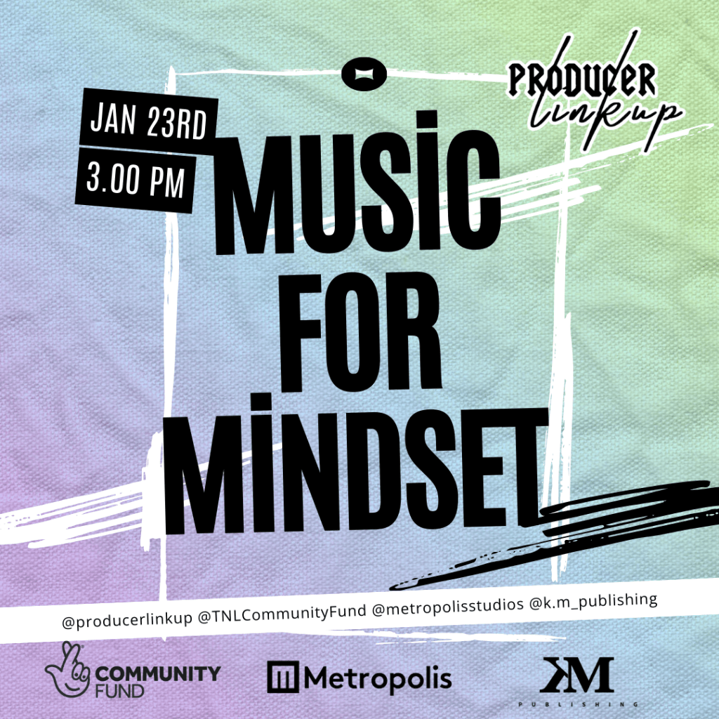 Workshops run from 3pm to 9pm and are delivered by Producer Link Up. The programme is powered by support from The National Lottery Community Fund, with studio space supported by Metropolis Studios through exclusive access. Additional industry support is provided by KM Publishing.